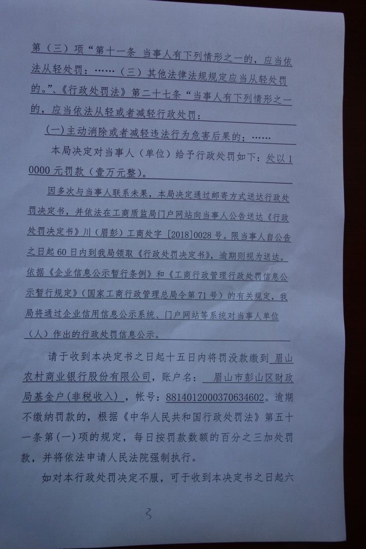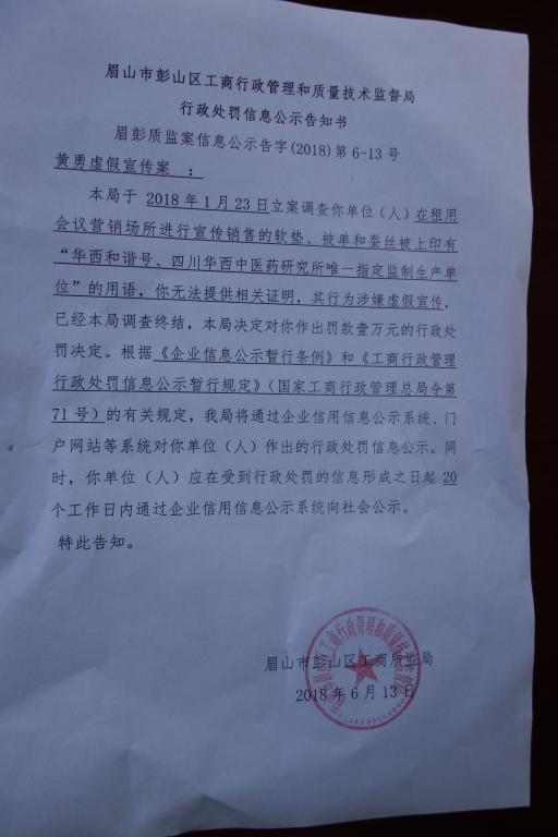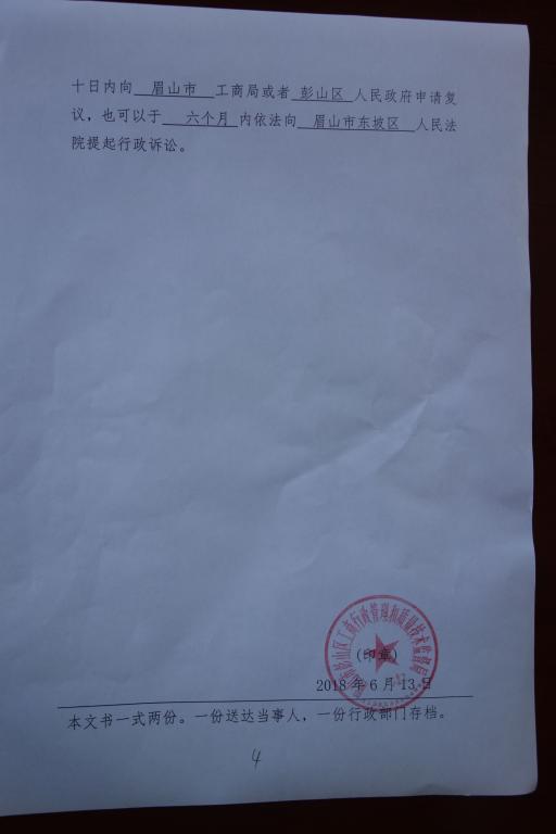 眉山市彭山区工商行政管理和质量技术监督局行政处罚信息公示告知书